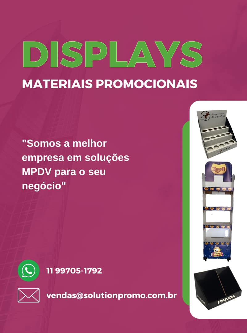 A Solution Promocional é uma gráfica reconhecida por sua excelência na produção de displays em papelão e cartão. Destaca-se no mercado de displays promocionais e embalagens, oferecendo serviços de qualidade, cumprindo prazos e preços competitivos.